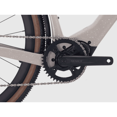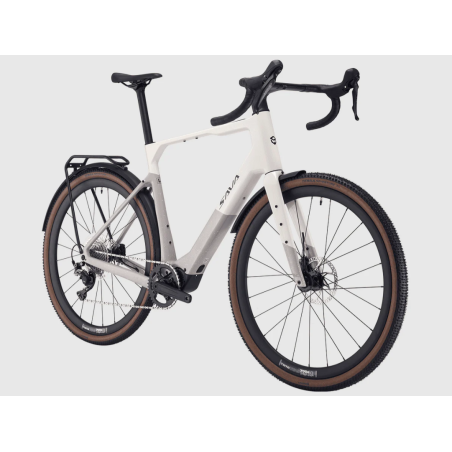 Vélo électrique Gravel ultra-léger. Le cadre en fibre de carbone est équipé d'un moteur extrêmement léger et puissant de 250 W/60 Nm et d'une batterie intégrée pratique de 360 Wh, suffisante pour toutes vos excursions. Un superbe vélo pesant moins de 15 kg, que même vos amis ne remarqueront pas.
